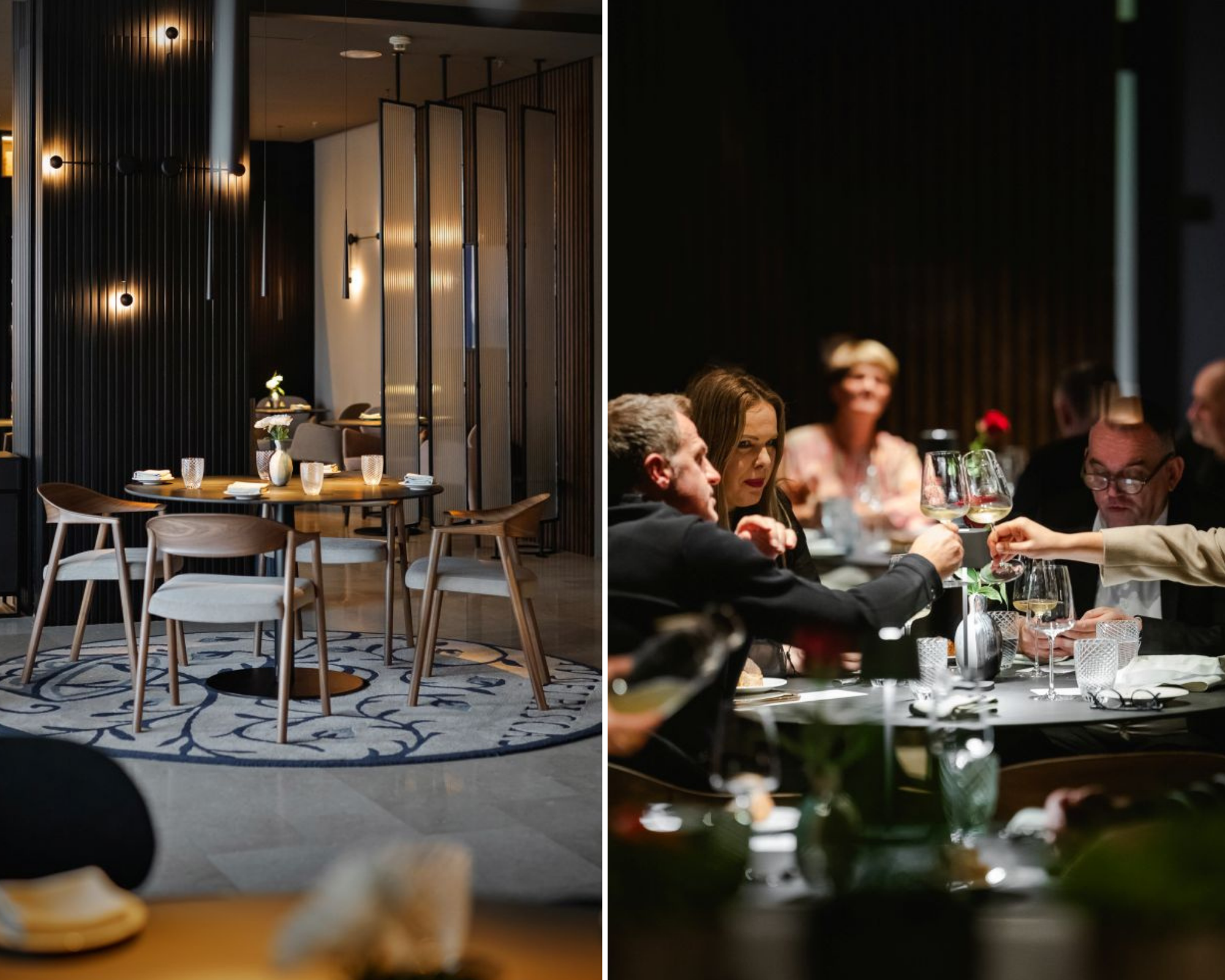 Večer započinje maštovitim zalogajima – macaronom s mousseom od lososa i gelom od cikle, kroketom od Pepper Jack sira s aiolijem od paprike te tacom s goveđim tartarom, uz koje se toči Ca’ del Bosco cuvée prestige.
