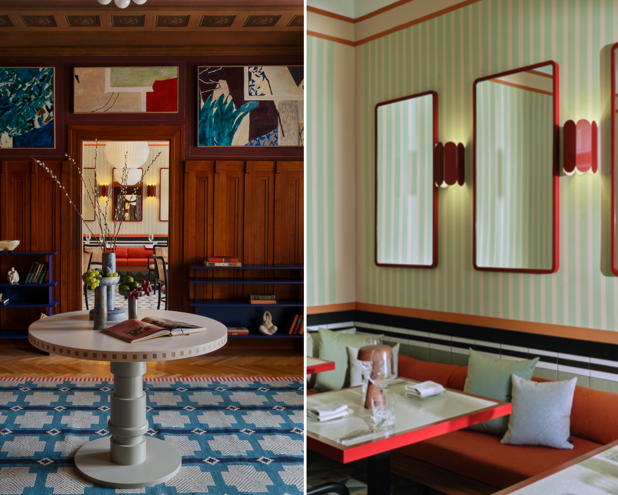 Interijer Mokosha pažljivo je promišljen do posljednjeg detalja. Od odabira materijala i boja do obnove originalnih stropnih rozeta, sve je izvedeno s idejom da se prošlost i sadašnjost isprepletu u harmoničnom dijalogu.