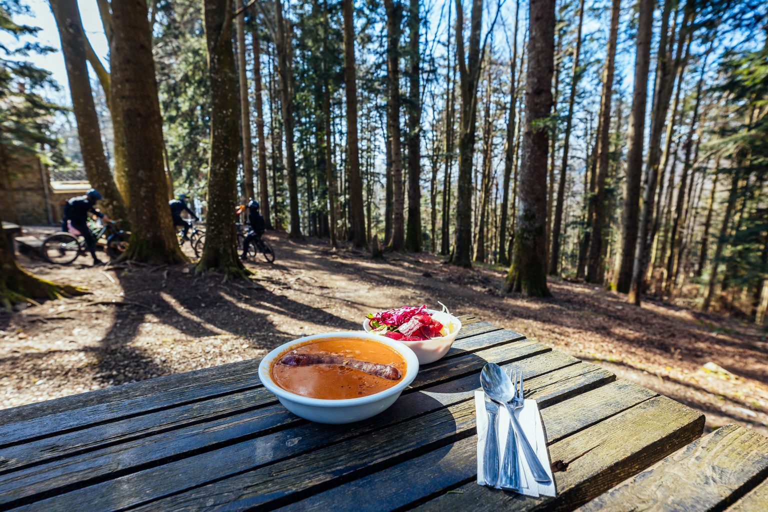 Nakon šetnje ili vožnje, najbolje je odmoriti se u nekom od brojnih planinarskih domova i restorana. Ovdje se nudi prava domaća hrana – grah, kobasice, gulaši, štrukli, štrudle od jabuka, jela s gljivama i kestenima, te mirisni čajevi i domaće rakije. Sve je pripremljeno od lokalnih namirnica i s puno topline.