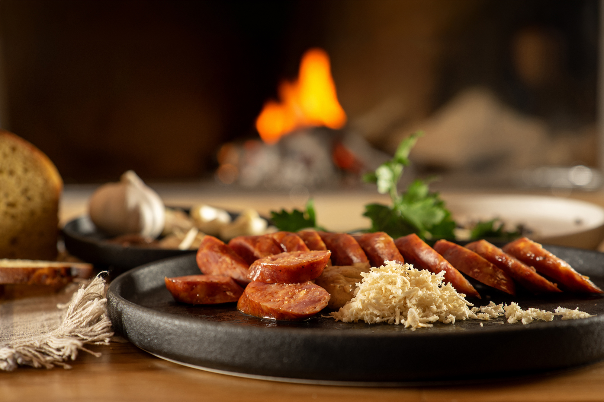 Samoborska češnofka (poznata i kao Samoborska češnjovka) nije samo kobasica – ona je simbol Samobora, dio identiteta i načina života. Ova dimljena kobasica za kuhanje proizvodi se od svinjskog, goveđeg i/ili junećeg mesa, uz dodatak uvarka od svježeg češnjaka i suhog bijelog vina. Upravo ti sastojci daju joj onaj prepoznatljiv, pun okus kojemu se teško odolijeva.