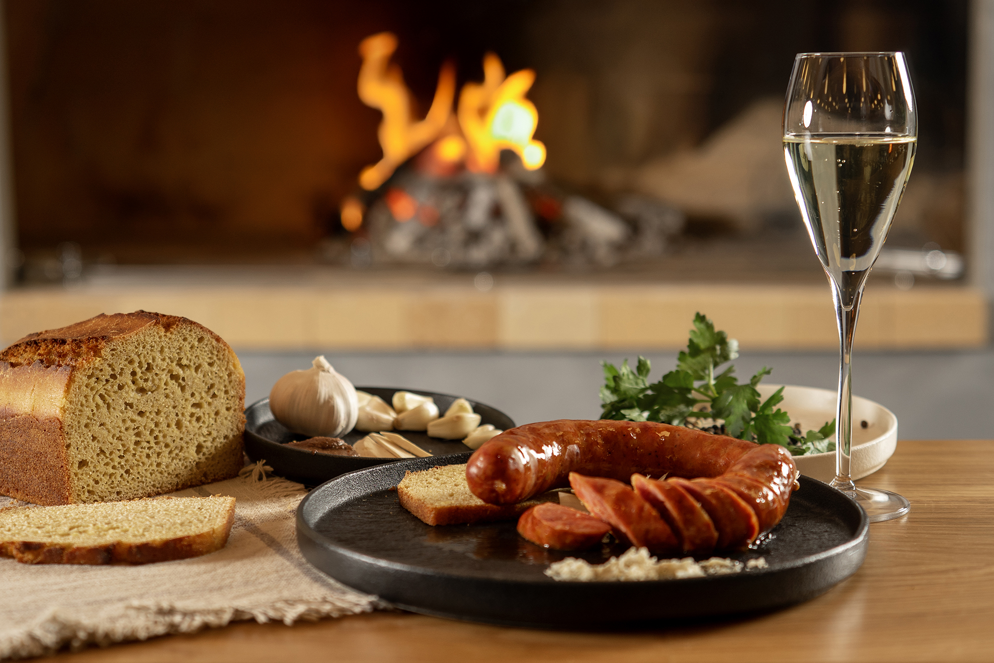 Prava Samoborska češnofka najbolje se sljubljuje uz svježe naribani hren i poznatu Samoborsku muštardu. Hren donosi svježinu i pikantnost, dok muštarda, s blagom ljutinom i notom karamela, stvara savršen kontrast i zaokružuje bogatstvo okusa.