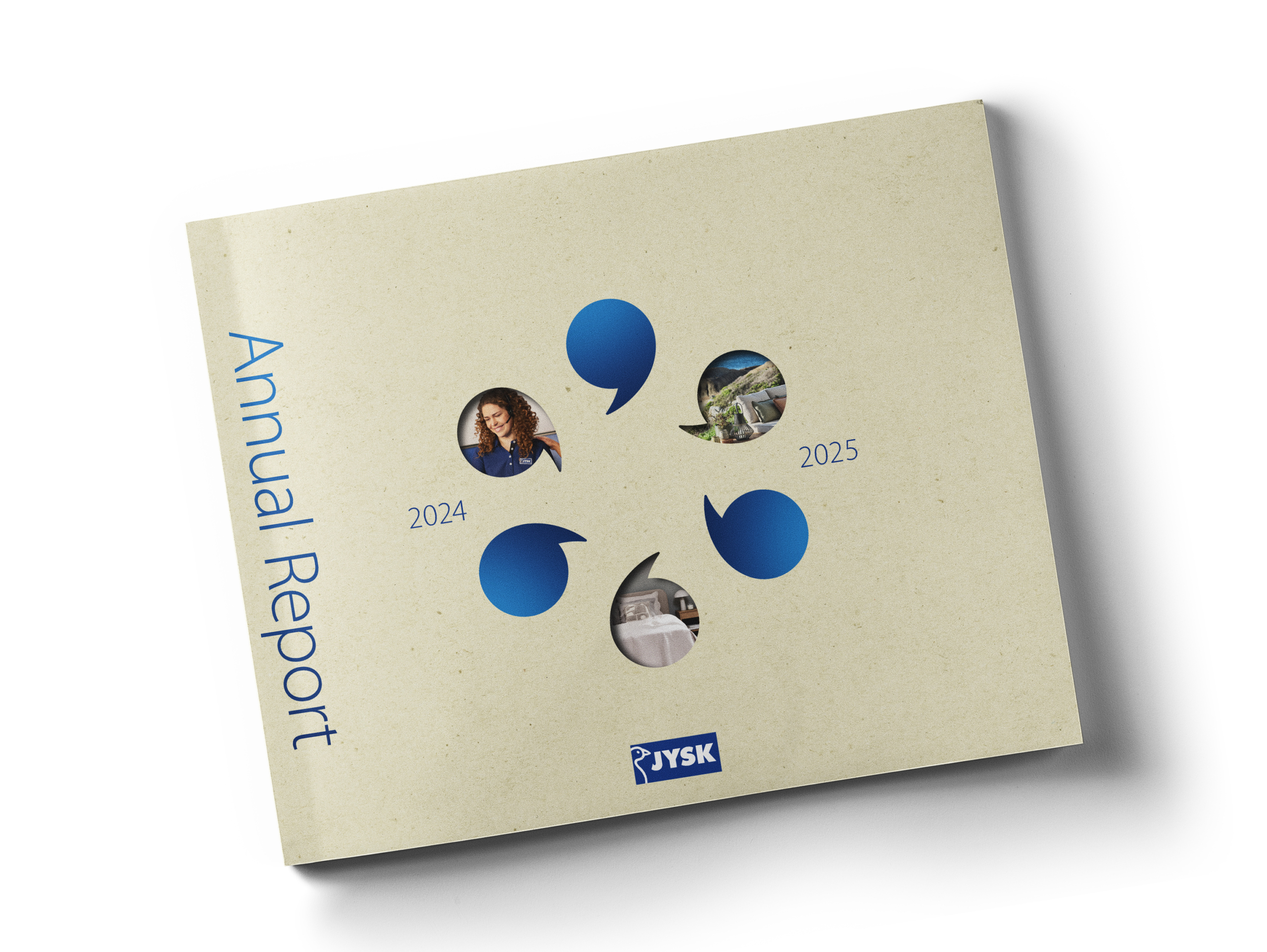 Većina emisija u scope 1 i 2 dolazi iz trgovina, a u FY25 JYSK je smanjio emisije po trgovini za 9 % u usporedbi s FY22. U pogledu scope 3, JYSK radi na odvajanju rasta poslovanja od povećanja emisija, a u protekloj financijskoj godini smanjio je emisije po prodanoj toni proizvoda za 16,5 % u odnosu na FY22.