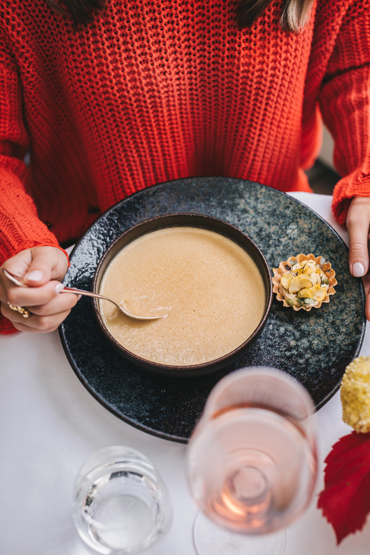 Kolekcija predjela uključuje i puževe s anisom, poslužene uz orzotto s biljnim pestom, teksturalno zanimljivu pjenu, prah od peršina i hrskavu zob. Jakobove kapice dolaze u baršunastom veloutéu od buče i naranče, s kremom od cvjetače, pestom od bučinih sjemenki i dekorativnim tuileom od buče. Za hladne dane tu je i pravi comfort food: topla krem juha od kestena s mousseom od lješnjaka i carpacciom od kestena — tanjur koji grije i mirisom i okusom.