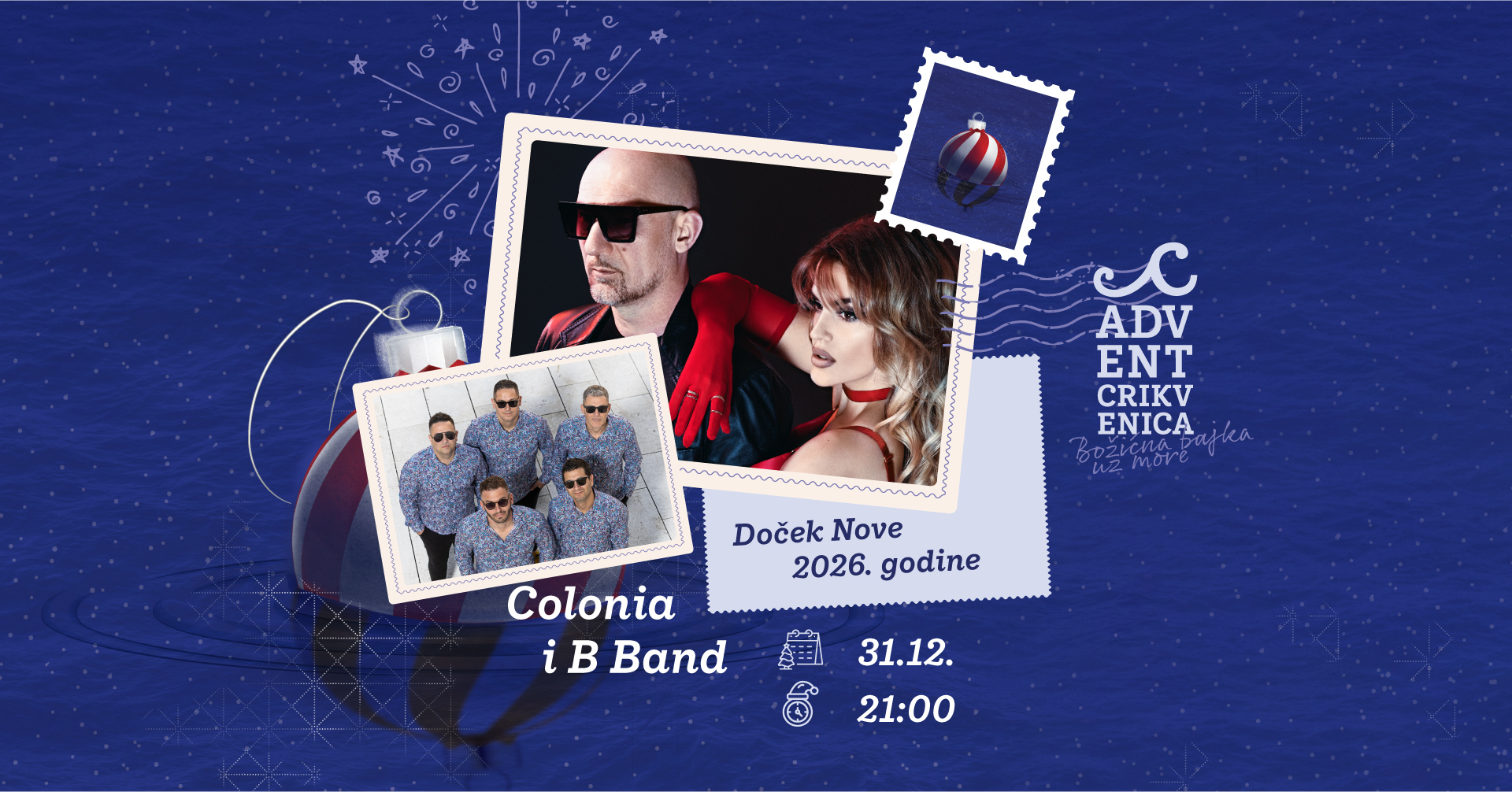 U večernjim satima, od 21:00, pozornica se vraća u Crikvenicu. U srcu grada, u Preradovićevoj ulici, započinje veliki doček Nove godine. B Band i popularna grupa Colonia pobrinut će se za zabavu do jutra. Hitovi, ples i dobra atmosfera jamče noć punu smijeha i uspomena za pamćenje.
