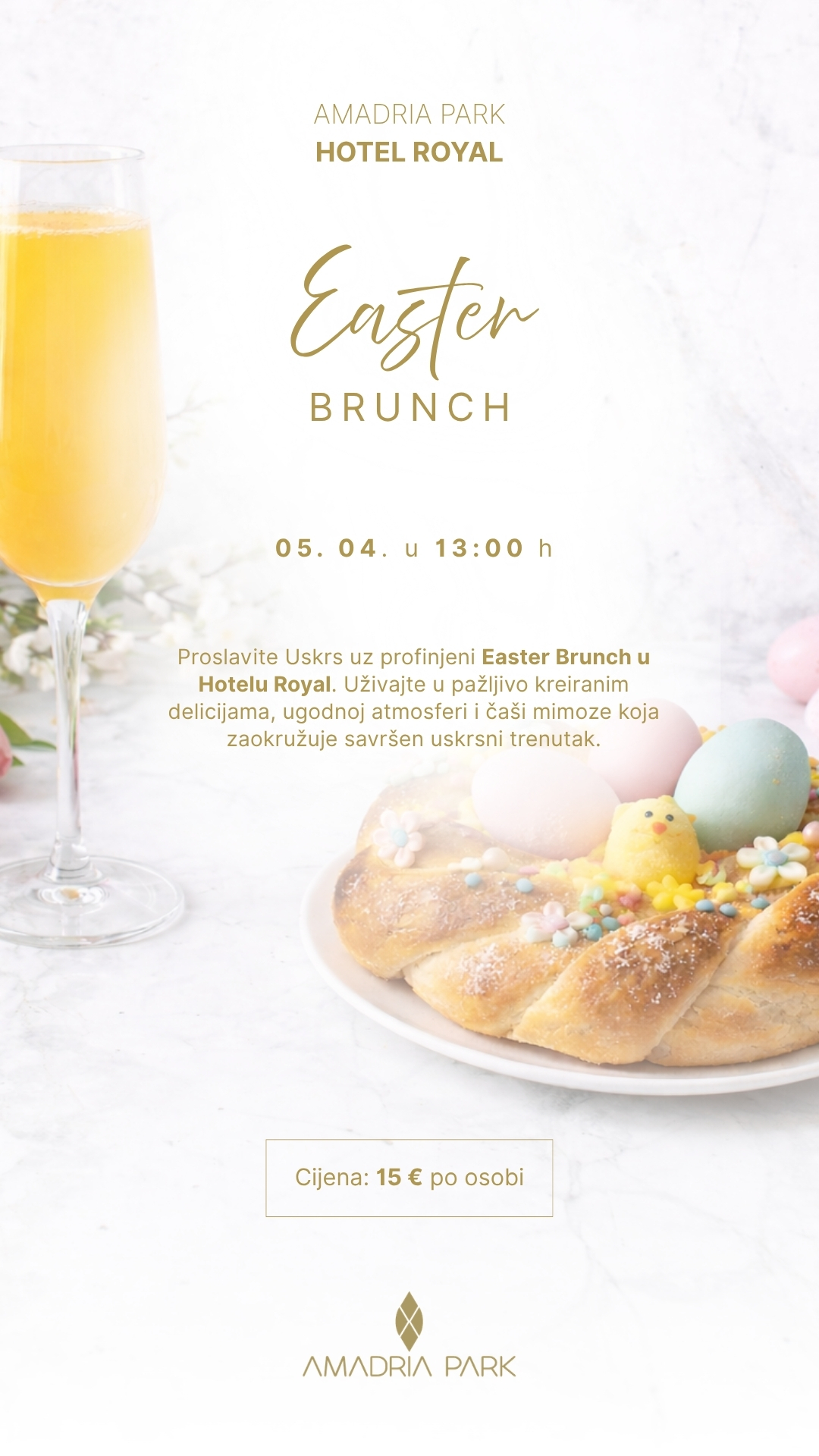 Smješten uz samo more, Hotel Royal nudi idealno okruženje za opušteno druženje s obitelji i prijateljima. Ovog Uskrsa gosti mogu uživati u pažljivo osmišljenom brunchu koji donosi bogat izbor tradicionalnih i modernih delicija, pripremljenih s posebnom pažnjom i ljubavlju.