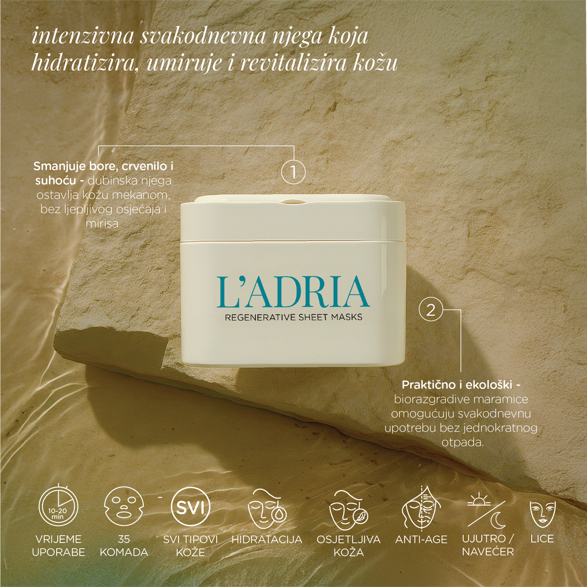 Ako tražiš jednostavan, učinkovit i ugodan način da svojoj koži pružiš svakodnevnu dozu njege — L’ADRIA Regenerative Sheet Masks mogle bi postati tvoj novi favorit.