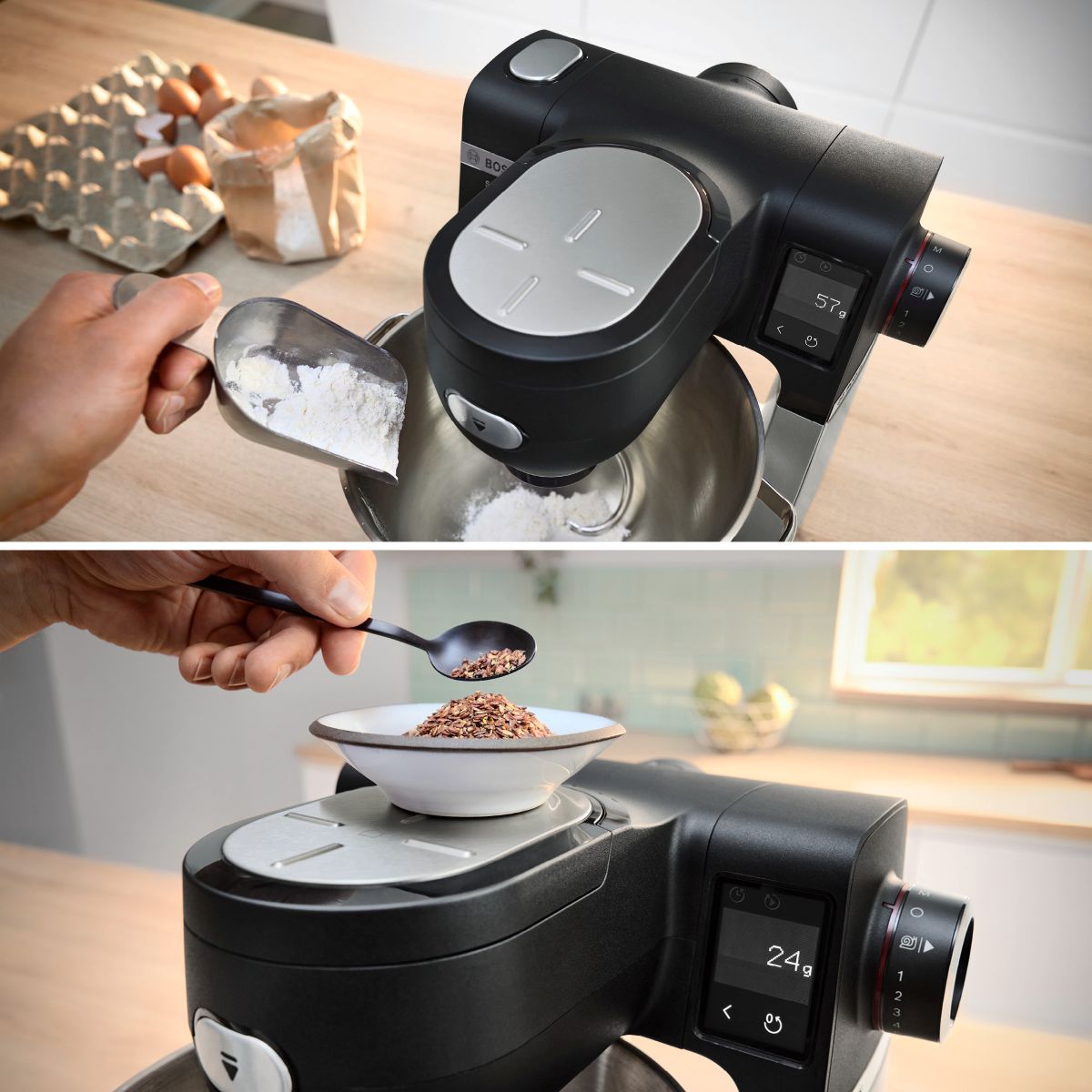 Bosch Serie 6 savršen je za svakodnevnu upotrebu. S motorom snage 1600 W, posudom od 5,5 litara i integriranom vagom, omogućuje pripremu većih količina hrane u jednom koraku. Automatski programi i sustav 3D miješanja jamče ravnomjernu obradu sastojaka i idealnu teksturu, čak i kod zahtjevnijih tijesta.