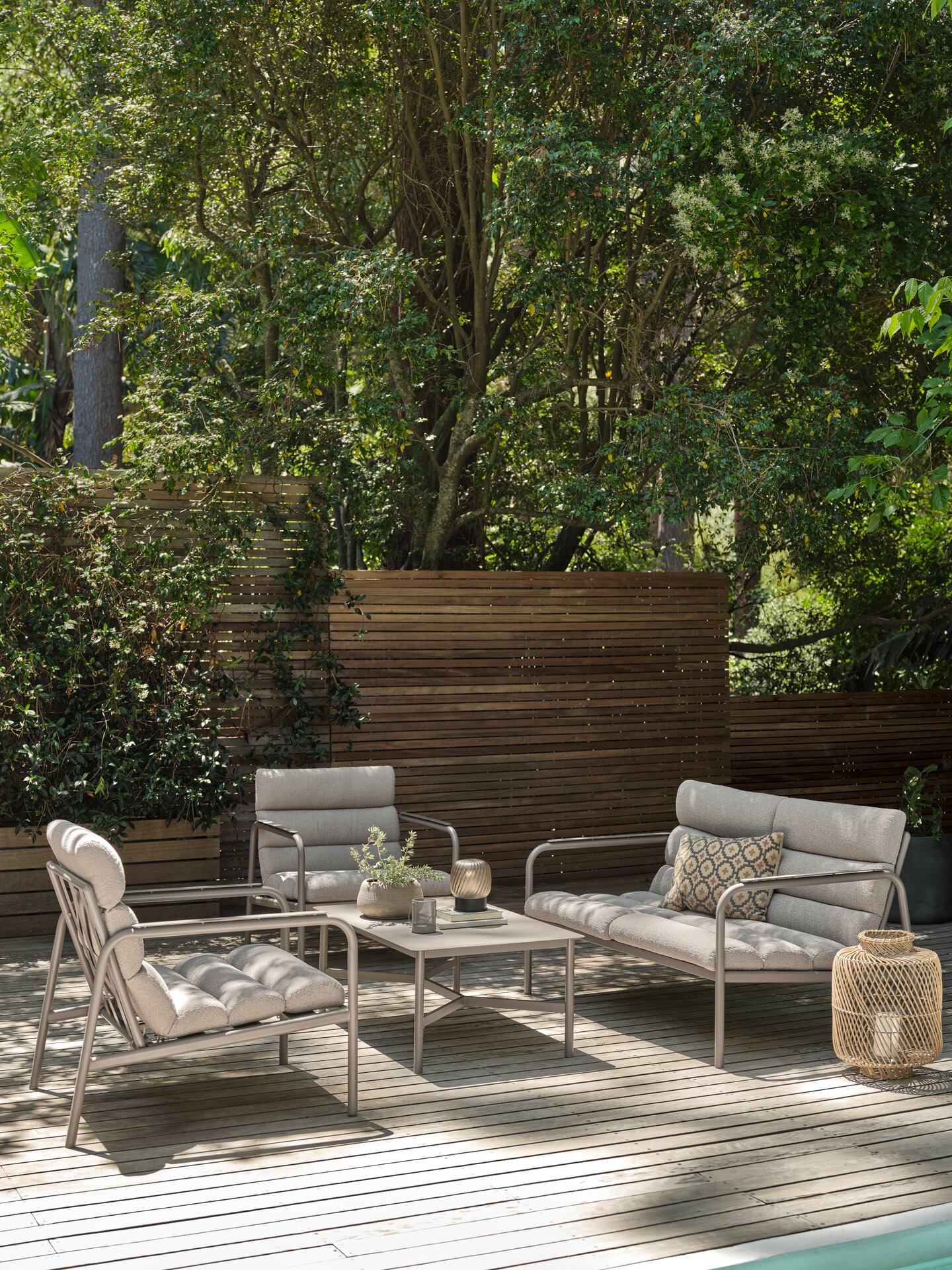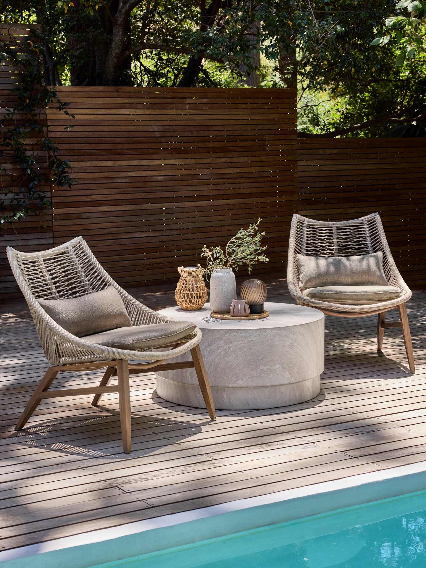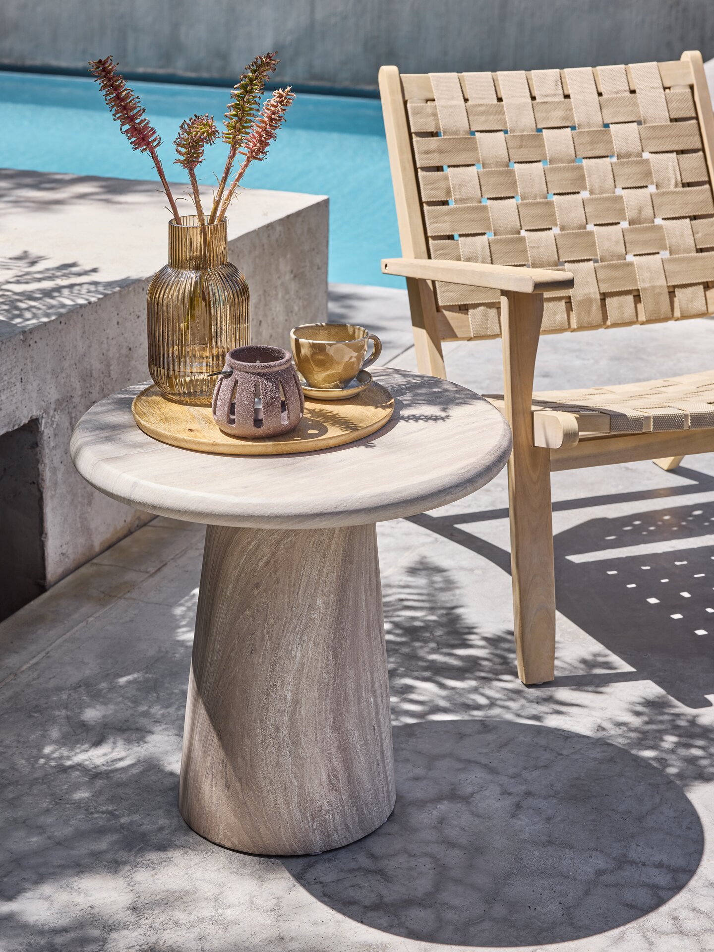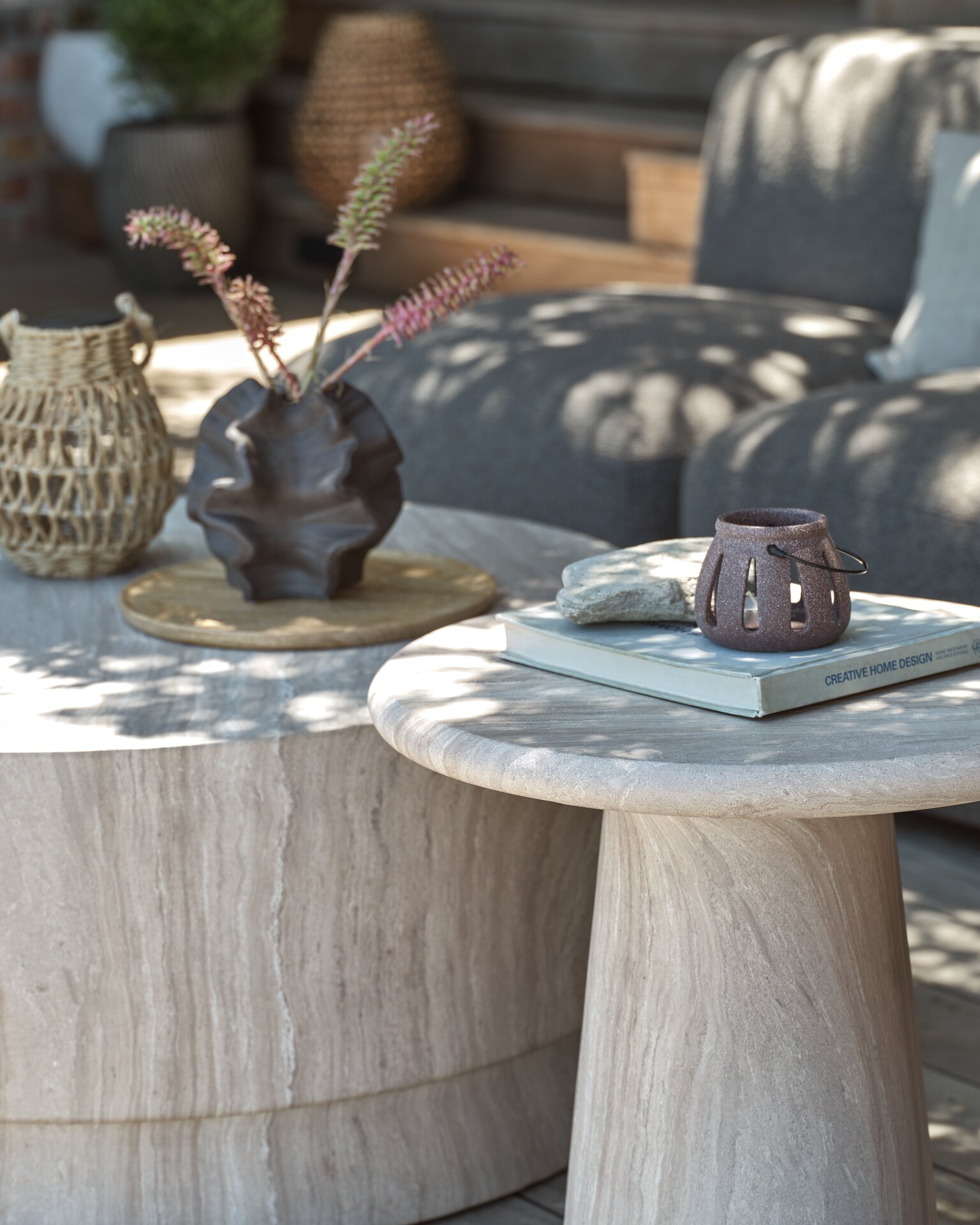 Sve djeluje spontano, opušteno i nenametljivo – kao da je priroda sama uredila prostor. Materijali izgledaju prirodno i pomalo nesavršeno, ali istovremeno nude visoku razinu izdržljivosti i funkcionalnosti. Naglasak je na svestranim komadima koji se lako uklapaju u različite stilove – i jednako dobro funkcioniraju na terasi, balkonu ili u dnevnom boravku.